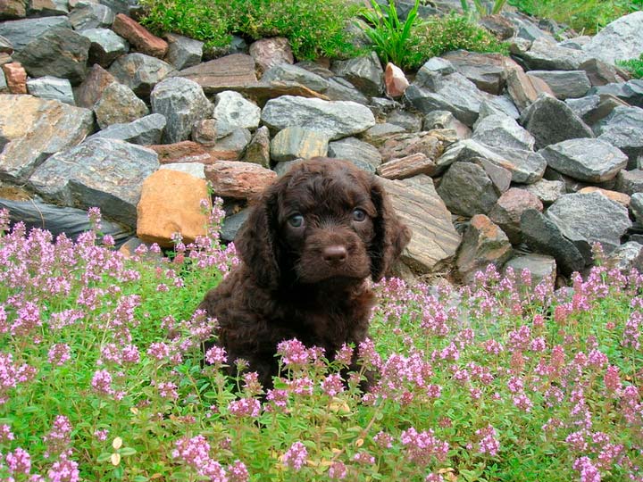 Le pelage est composé de nombreuses petites boucles, assez denses mais souples. Sa couleur est brun foncé (chocolat) ou foie. Le poil des orteils est légèrement plus clair. Une tache claire sur le poitrail est admise.