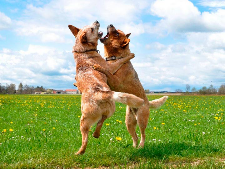 Il s'entend très bien avec les autres animaux de la maison. Il est souvent indifférent aux chiens errants. Il provoque rarement des conflits, mais répond toujours à l'agression par l'agression. Si vous avez de petits animaux ou des oiseaux à la maison, vous n'avez pas à vous inquiéter : le Bouvier australien n'a pratiquement aucun instinct de chasse.