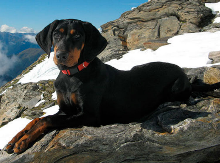 Le poil est court, dense, fort et épais, avec un aspect brillant. Il mesure environ 2 cm de long. La robe est noire avec de petites marques feu bien délimitées (allant du fauve au rouge foncé). La présence de marques feu au-dessus des yeux est obligatoire.