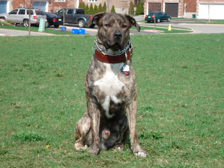 La peau est épaisse et pigmentée. Le poil est lisse, court et très dense. La robe est bringée.