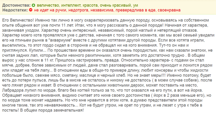 Sans faire de distinction entre le bien et le mal, soulignons plusieurs caractéristiques de la race, d'après les avis de propriétaires britanniques :