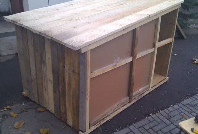 Pour construire un abri d'hiver très simple, commencez par fabriquer deux palettes en bois sur des pieds en bois. Ensuite, assemblez-les.