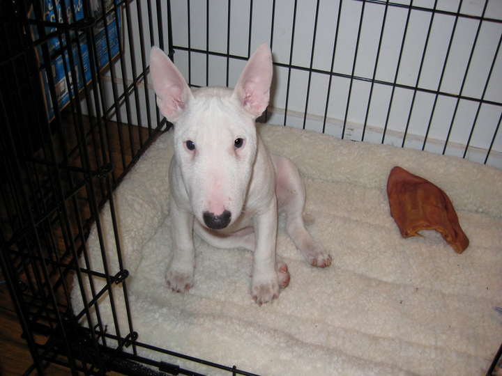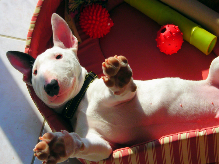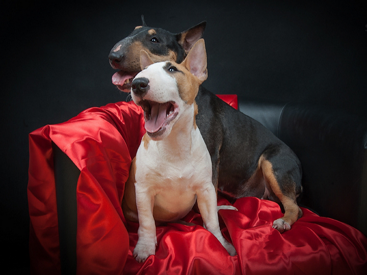 Photos de bull terriers dans la galerie (chiots et chiens adultes, bull terriers standards et miniatures) :