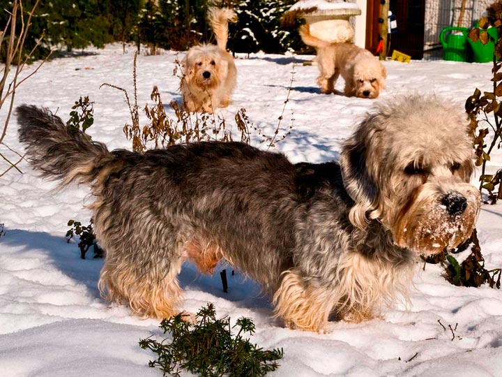 Les propriétaires de ces petits chiens rigolos en ont vu de toutes sortes de la part des passants. Il est préférable qu'on leur demande simplement de quelle race il s'agit. Parfois, on les insulte même : « croisés », « brownies », « teckels à chapeau ». Imaginez l'indignation de Sir Walter Scott s'il avait entendu une chose pareille à propos de sa race préférée, le Dandie Dinmont Terrier ! Ces petits chiens énergiques à l'allure si particulière étaient autrefois élevés pour la chasse au terrier. Aujourd'hui, ils sont exclusivement des chiens de compagnie et, sans leur riche histoire, on les classerait sans doute parmi les chiens nains.