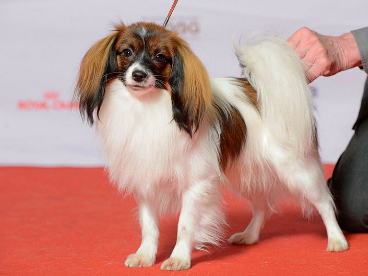Le Phalène est un petit chien gracieux, à la construction harmonieuse, au museau allongé et au poil long. Sa hauteur au garrot peut atteindre 28 cm.