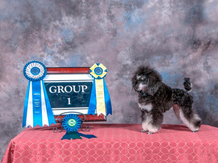 La norme FCI ne reconnaît que les couleurs unies : noir, blanc, marron, abricot, argent, rouge.