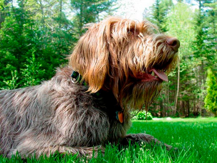 Le poil de couverture est rêche, rappelant les soies d'un sanglier, droit et dur. En dessous se trouve un sous-poil dense et bien développé. La couleur préférée est le gris tacheté de brun (foie) ou le brun uni. Les couleurs blanc-brun et blanc-orangé sont acceptées.