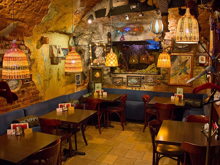Situé dans le centre historique de Saint-Pétersbourg, près de la station de métro Chernyshevskaya, cet établissement est célèbre non seulement pour sa délicieuse cuisine, son intérieur unique et son programme musical animé en soirée, mais aussi pour son chat, Spinach, qui accueille les clients à l'entrée et se comporte comme un membre à part entière de l'équipe.