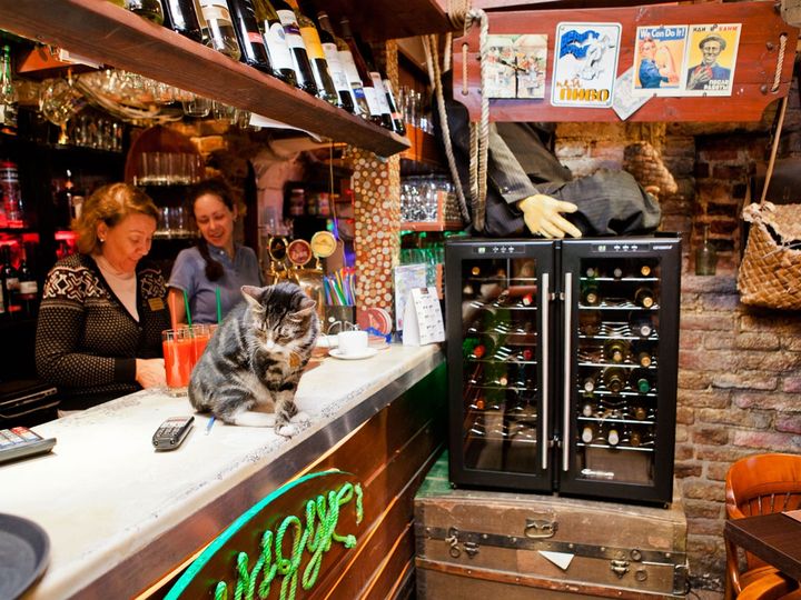Un petit café à l'ambiance chaleureuse, où les chats se promènent en toute liberté et n'hésitent pas à sauter sur les genoux des clients. L'atmosphère y est calme et sereine, idéale pour une soirée de détente après le travail. Des rencontres pour célibataires y sont régulièrement organisées, permettant ainsi de trouver non seulement un chat, mais aussi un ami.
