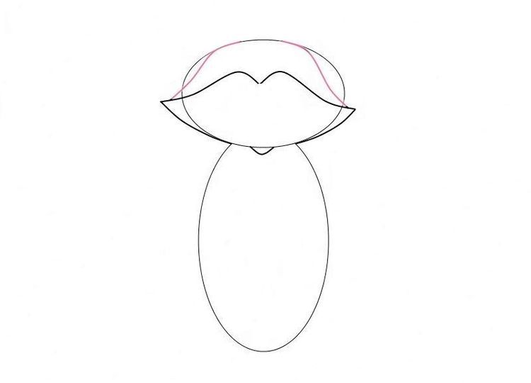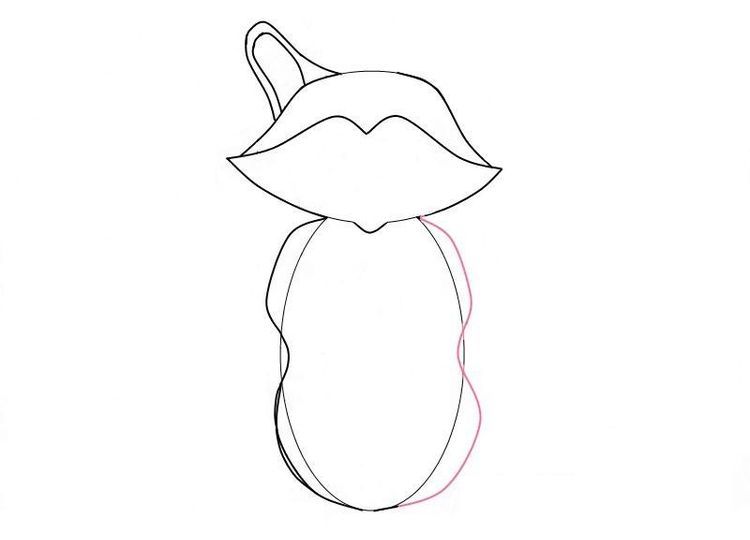 - Nous donnons au corps de l'animal son contour correct. Tracez le côté gauche par une ligne courbe, s'affinant légèrement vers le centre. Tracez le côté droit selon le même principe. Les deux lignes doivent être symétriques.