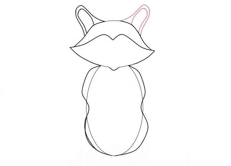 - Dessinez l'oreille du raton laveur en haut de la tête, légèrement décalée sur le côté. Commencez par dessiner le contour extérieur du pavillon, puis le contour intérieur.