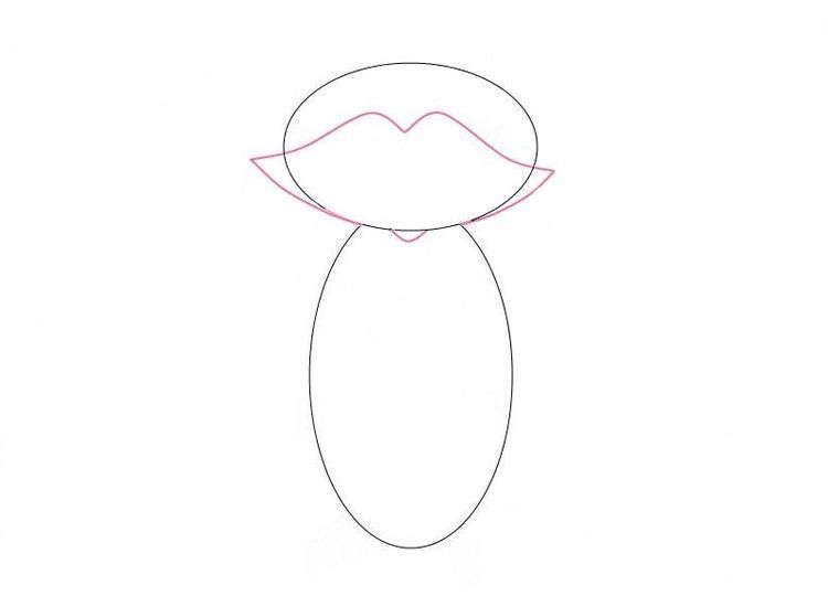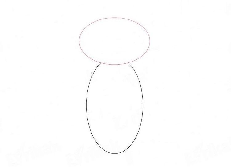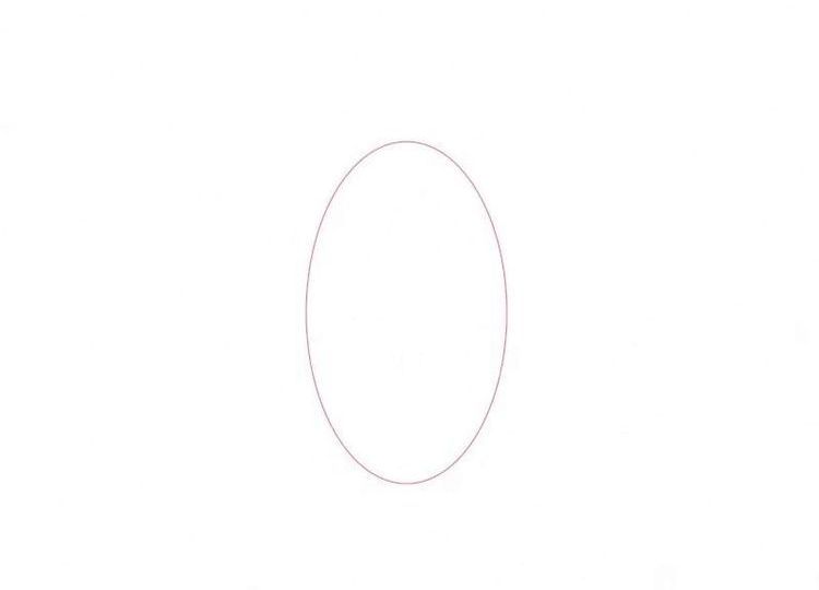 - Commençons par dessiner le corps. Pour cela, tracez un ovale allongé verticalement dans la moitié inférieure de la feuille, plus près du centre.