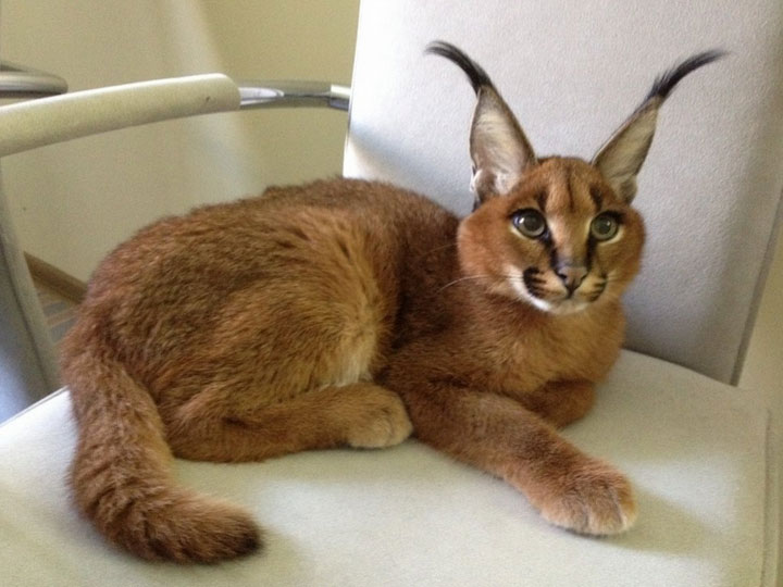 Caracal, ou steppe lynx Le caracal est un mammifère prédateur de la famille des félins, mais l'homme a appris à le domestiquer. Les caracals domestiques sont généralement amicaux et sociables. C'est précisément la combinaison de son apparence féroce et de sa nature docile qui en a fait l'un des animaux de compagnie les plus prisés.