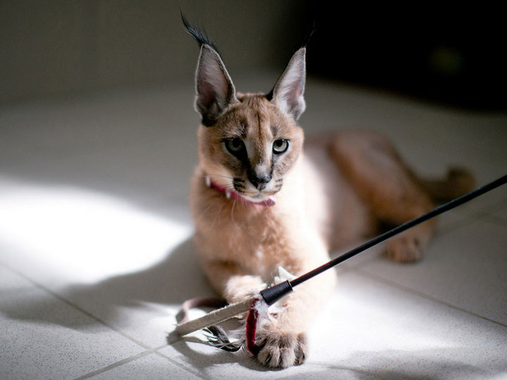 Les caracals sont assez destructeurs et, en jouant, peuvent mettre une maison sens dessus dessous et endommager ou casser de nombreux objets. La plupart des jouets pour chats ne conviennent pas aux caracals : ils sont trop fragiles et trop petits. Les jouets pour chiens de taille moyenne ou les jouets pour enfants sont plus adaptés. Posséder un caracal représente un certain coût, tout comme les frais d'entretien ultérieurs.