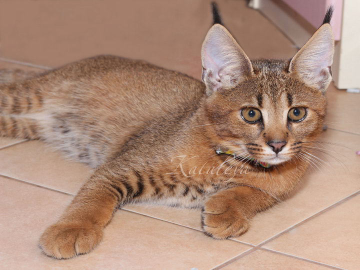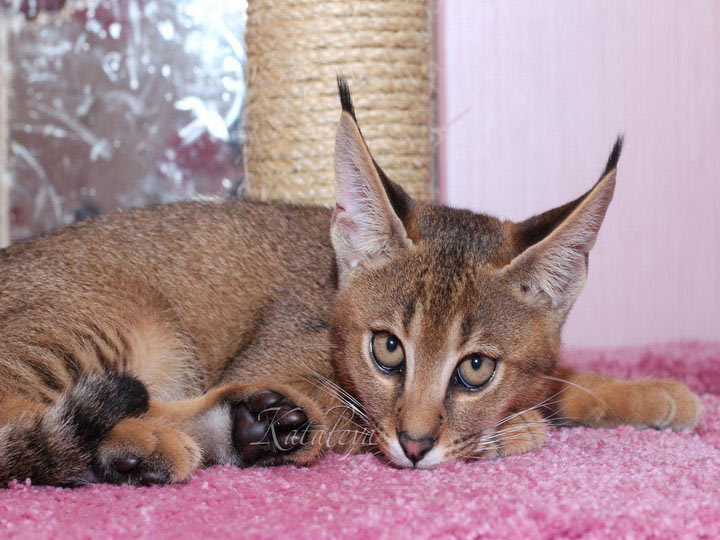 Des chats de ce type sont très difficiles à obtenir. Le premier hybride de ce genre est né par accident au zoo de Moscou dans les années 1980. Une chatte du coin s'est introduite dans l'enclos d'un caracal, a obtenu ce que le mâle désirait, et deux mois plus tard, elle a donné naissance à un chaton miraculeux. des pompons sur les oreillesC'était un mâle, la reproduction était donc impossible. Les chats hybrides sont stériles jusqu'à la cinquième génération.