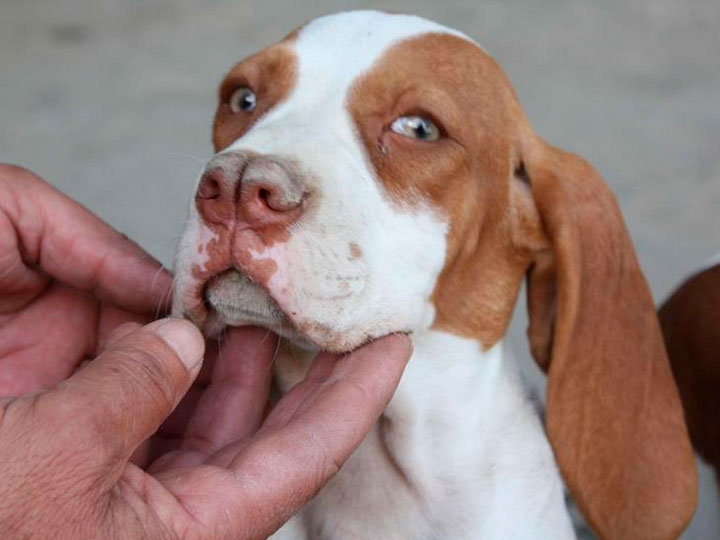 Le poil est court, sans sous-poil. La robe est brune et blanche (le brun variant du froment clair au foie foncé) ou entièrement brune. Les marques feu et les mouchetures sur le blanc sont admises.