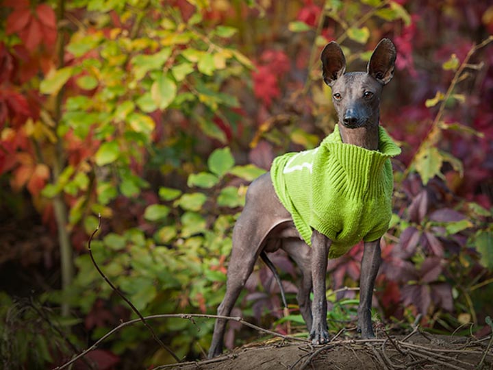 Habiller un chien sans poils est indispensable. Heureusement, les chiens habitués à porter des vêtements depuis leur plus jeune âge ne sont généralement pas gênés par les nouveaux vêtements. Dès les premiers frimas, on les habille. Le froid vous oblige à prévoir des vêtements chauds supplémentaires : il vous faudra non seulement un bon manteau, mais aussi un chapeau et peut-être des bottes. Il est essentiel que les vêtements soient à la bonne taille : ils doivent permettre au chien de bouger librement, sans être trop amples.