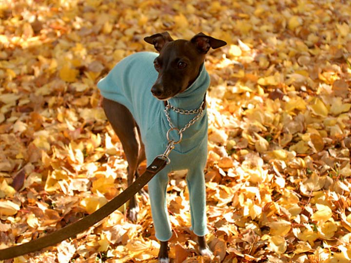 L'automne et l'hiver sont des saisons idéales pour exhiber ses nouveaux vêtements : pulls, salopettes, bottes.Il est préférable d'acheter un collier pour un lévrier italien légèrement évasé au niveau du cou. Chez les éleveurs de lévriers, on l'appelle « collier hareng ». Cette forme particulière minimise l'inconfort et le risque de blessure à la trachée. Le collier doit être doux à l'intérieur comme à l'extérieur, sinon le poil s'usera très rapidement.
