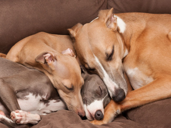 Un lévrier italien préférera sans doute dormir sous la couverture de son maître, et il est préférable que ce dernier ne le déplace pas pendant son sommeil. Pour les chiens plus indépendants, il est conseillé d'opter pour une niche et un panier, qui devraient impérativement inclure une couverture.