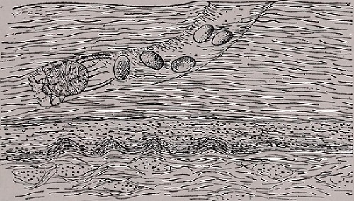 - En observant attentivement le museau, les oreilles, le ventre et l'aine, vous remarquerez des ampoules sur la peau, qui forment des croûtes après grattage. L'animal se blesse en se grattant avec ses pattes.