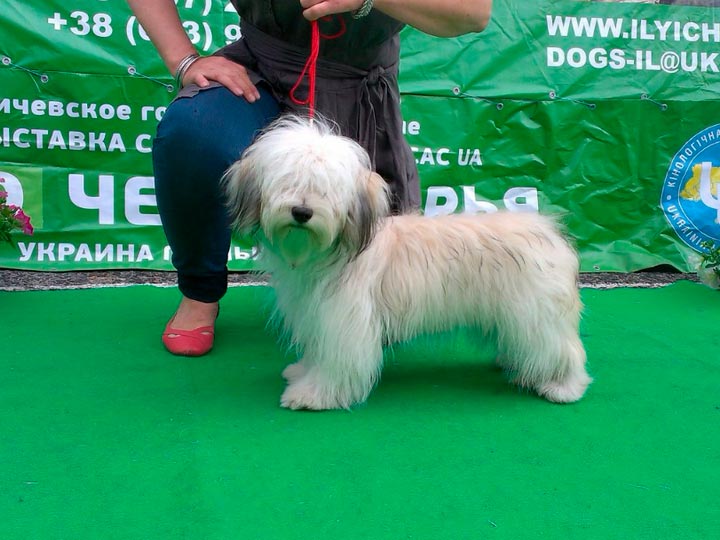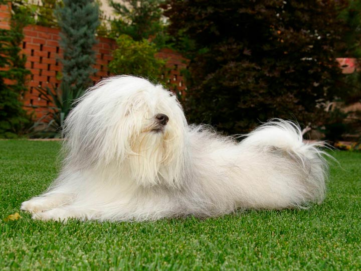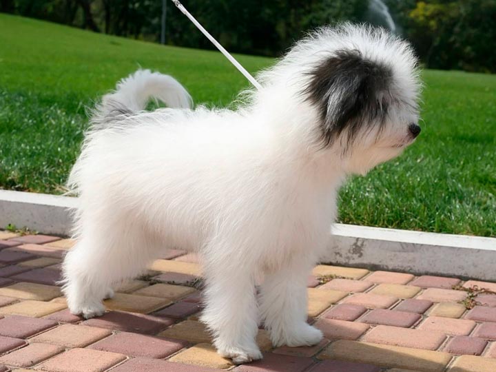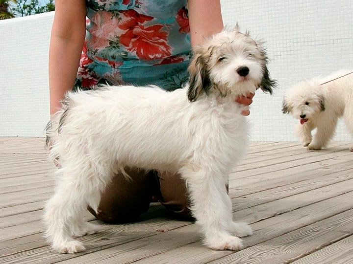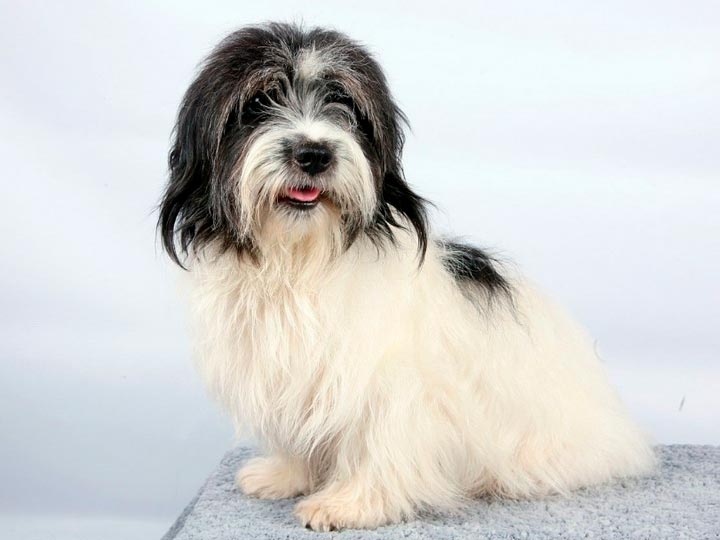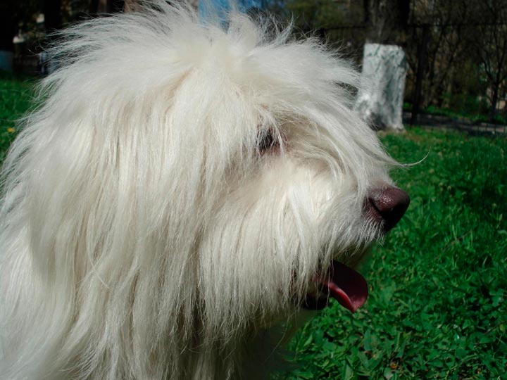 La peau est élastique et d'épaisseur moyenne. Le poil est double. Les poils de garde, mi-durs, mesurent de 7 à 15 cm de long et forment une frange sur la tête qui couvre les yeux, la barbe et la moustache. Le sous-poil est bien développé. Couleurs :