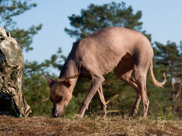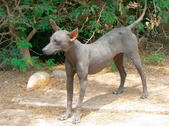 Des archéologues ont découvert des traces isolées de chiens nus dans les sépultures des anciens Indiens Chivin des Andes, qui peuplaient la région entre 700 et 200 av. J.-C. Plus tard, lors des fouilles des vestiges de la culture Nazca (100 à 700 apr. J.-C.), des traces du chien nu du Pérou ont été mises au jour dans des sites archéologiques plus récents, sous forme de dessins, de moulages et de céramiques. À en juger par ces artefacts, les chiens étaient très précieux pour les Incas, qui les considéraient comme des intermédiaires entre les dieux, le cosmos et les hommes. Ils étaient utilisés pour la chasse, comme messagers et même comme bouillottes nocturnes. À une certaine époque, les chiens nus étaient considérés comme des guides vers l'au-delà et étaient enterrés avec leurs maîtres. Ils étaient également réputés pour leurs vertus curatives, soignant les troubles musculo-squelettiques et autres affections. En raison de leur peau tachetée, on les appelait fleurs de lune ou orchidées. L'origine des chiens sans poils sur le continent reste un mystère, mais il existe deux versions : soit les chiens seraient venus d'Afrique en Amérique du Sud, soit ils seraient arrivés d'Asie via le détroit de Béring.