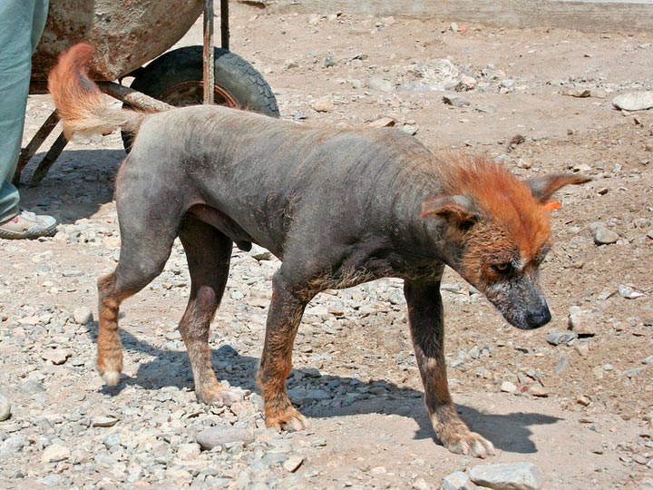 L'absence de poils chez le chien nu du Pérou est due à un gène dominant. Ses effets se manifestent par la présence de poils résiduels épars sur la queue, les pattes, la tête et les oreilles, ainsi que par des anomalies dentaires, notamment l'édentement complet. Selon les recherches, trois races – le chien nu du Pérou, mexicain Et Chien chinois à crête La base génétique est similaire. Chez le Terrier nu américain, l'absence de poils est due à un gène récessif différent ; elle n'est donc pas associée à des anomalies dentaires.