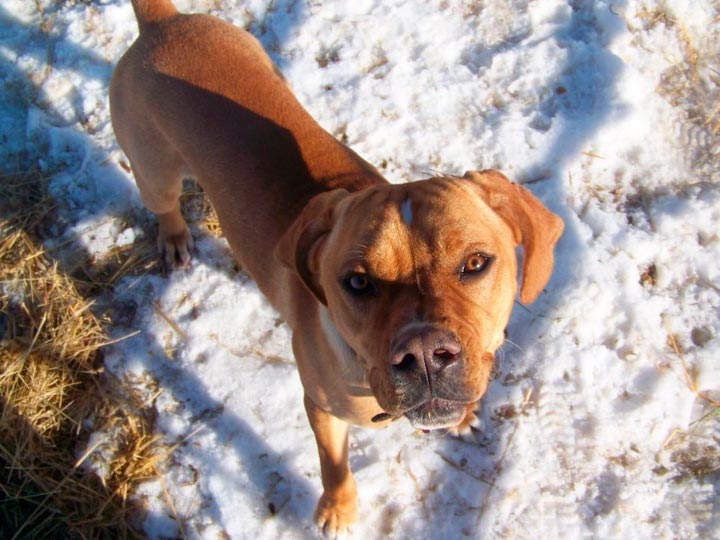 Le poil est court, dur et dense, couvrant uniformément le corps, sauf aux aisselles, à l'aine, à la région périanale et génitale où il est clairsemé et plus doux. La tête est fine et courte. Il n'y a pas de sous-poil. La robe est rousse, avec différentes nuances, unie ou tachetée de blanc sur la tête, le cou, le poitrail et les pattes.