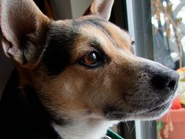 La tête est en forme de coin. Les yeux sont petits, bien écartés et ovales. Les oreilles, attachées haut, sont en forme de V avec des pointes acérées, dressées ou repliées sur le cartilage. Le stop est marqué. Le museau s'affine progressivement vers la truffe. Les lèvres sont fines. L'occlusion est en ciseaux. Le cou est proportionné à la tête, fin et se fond harmonieusement dans les omoplates plates.