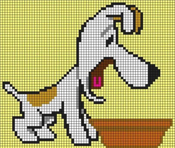 Cette méthode consiste non seulement à tracer des lignes simples, mais aussi à colorier un certain nombre de cases. Vous pouvez dessiner uniquement au crayon à mine tendre, pour créer des images monochromes, ou utiliser des stylos gel, des crayons de couleur ou des feutres. Vous obtiendrez ainsi des dessins colorés et éclatants d'un chien, case par case, dans un cahier.