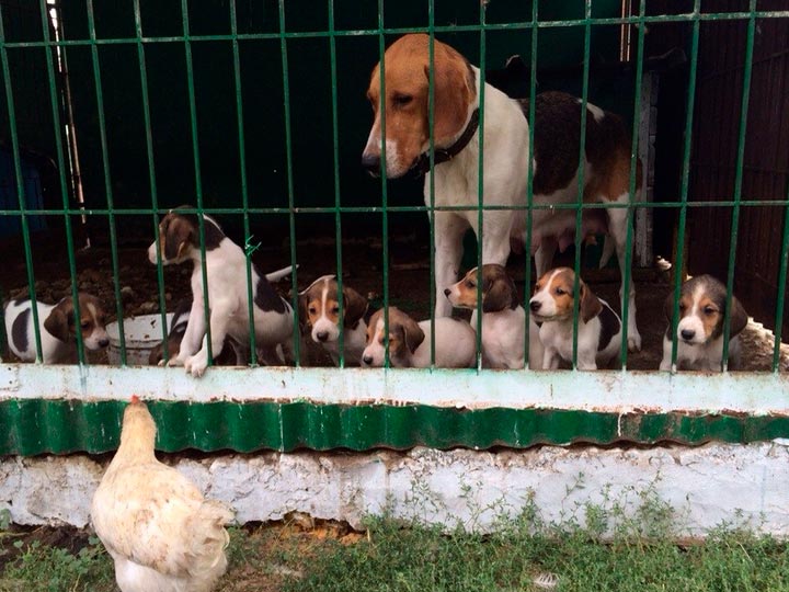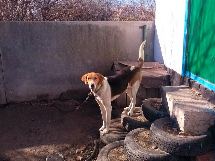 Photos de chiots et d'adultes de race Chien courant pie russe. Cette galerie présente des photos de ces chiens dans leur vie quotidienne et à la chasse.