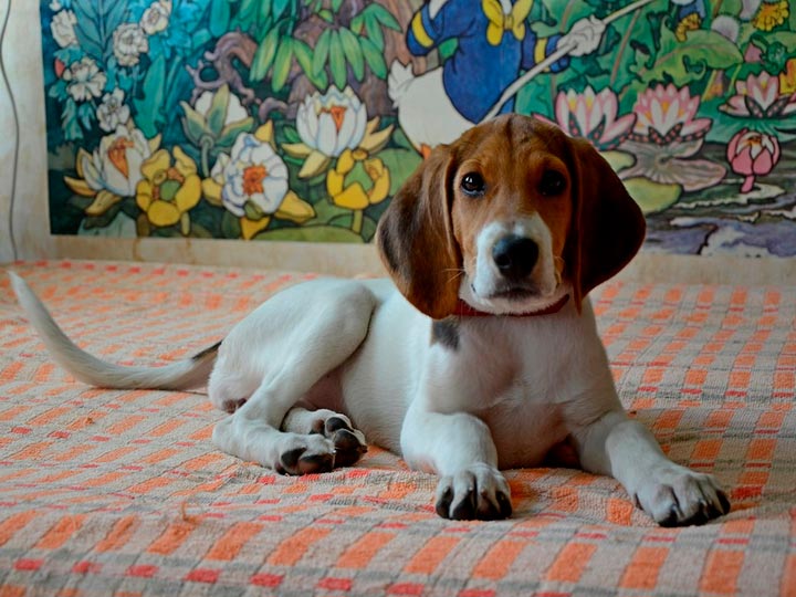 Le Chien courant pie russe est idéal comme chien de compagnie pour une personne qui aime la chasse et a besoin d'un assistant.