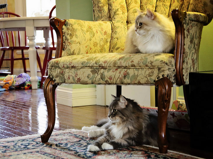 Un chat sibérien fier peut se réjouir de voir un arbre pousser dans le jardin ou la construction d'une grande structure, dont il s'efforcera d'atteindre le sommet. Les chatons sibériens aiment souvent grimper aux meubles, il faudra donc les surveiller pour éviter qu'ils ne laissent tomber des objets de valeur. Les chats sibériens supportent bien le froid, et les fortes chutes de neige ne les dissuaderont pas de se promener et d'explorer leur territoire. Après tout, ils viennent de Sibérie et sont habitués au froid.