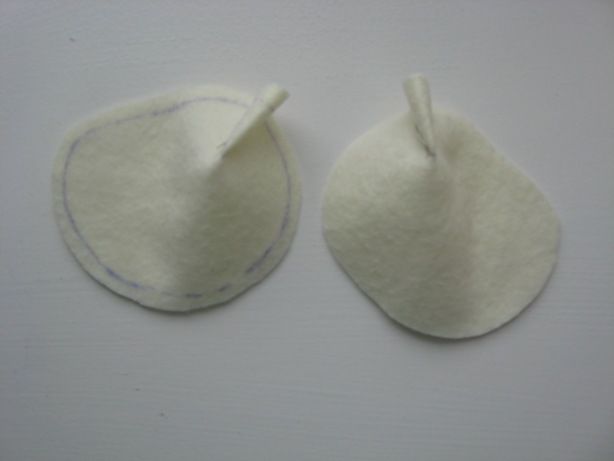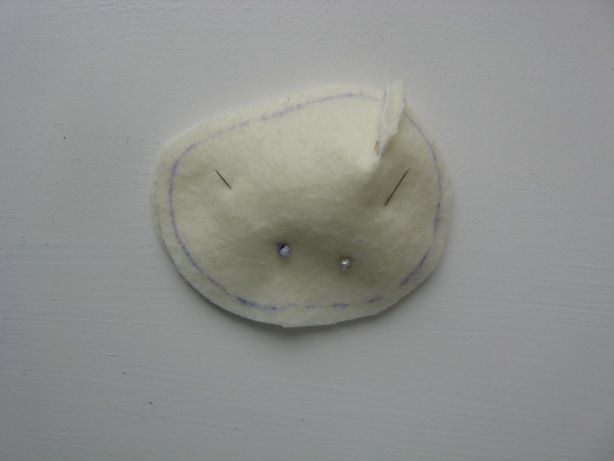 On fixe les oreilles sur les côtés de la tête avec des épingles, puis on les coud à l'intérieur avec un point invisible. Il faut bien vérifier leur symétrie.