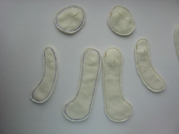 Nous remplissons chaque pièce de rembourrage synthétique ou autre, en le répartissant uniformément à l'intérieur à l'aide d'un crayon, et nous cousons les trous faits à la main.