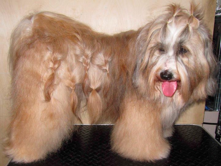 Les propriétaires qui ne présentent pas leurs chiens tibétains optent généralement pour coupes de cheveuxLe chien est tondu lorsque les températures remontent, à l'aide d'une tondeuse équipée d'un sabot de 6 mm, en laissant souvent une longue queue et de longues oreilles. À l'arrivée du froid, le terrier aura eu le temps de développer son poil de couverture et son sous-poil. Après une tonte courte, son pelage sera complet en un an et demi environ. Si le terrier tibétain participe à des expositions canines et qu'il est nécessaire de conserver un pelage long sur tout le corps, on utilise des tresses ou on réalise des boucles à l'aide d'épingles à friser.